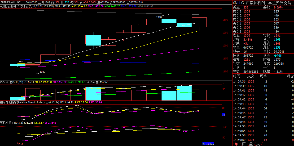 重庆再生资源交易中心 西南炉料钢(XNLLG)收评:今开1268、收1306、最高1308、最低1253,涨31点,涨幅2.43%。