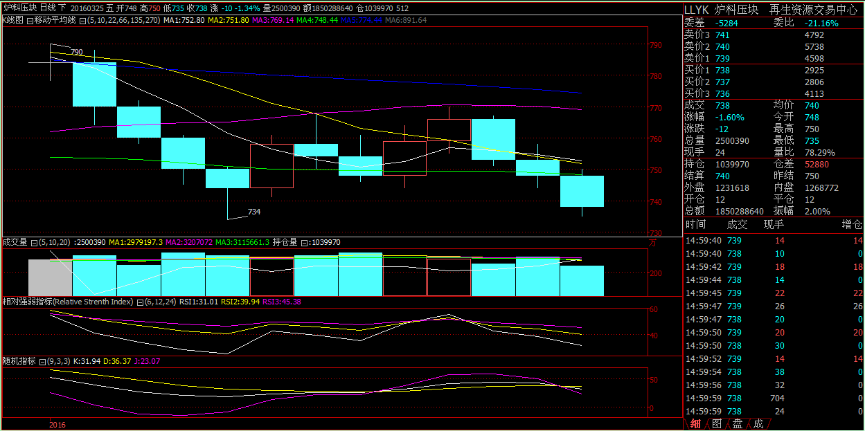 重庆再生资源交易中心 炉料压块(LLYK)收评:今开748、收738、最高750、最低735,跌12点,跌幅1.60%。