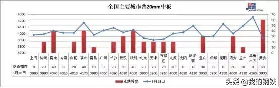 18日,国内6家建筑钢材生产企业出厂价上涨20-60元/吨。